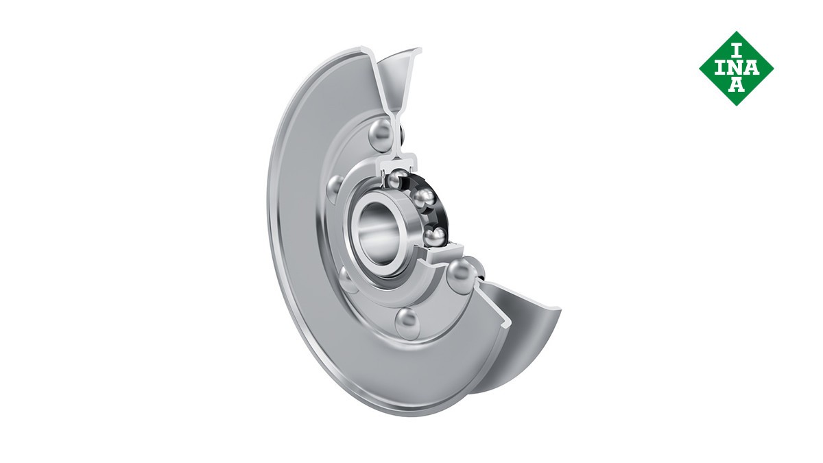 這種即裝即用單元,由兩半深沖成型鋼板鉚接在一起的皮帶輪和深溝球軸承組成。直徑較大的皮帶輪需另外焊接在一起。皮帶輪輪廓上的倒角可防止皮帶受損。由于是鋼板結(jié)構(gòu),因此附加旋轉(zhuǎn)質(zhì)量和失衡質(zhì)量較低。